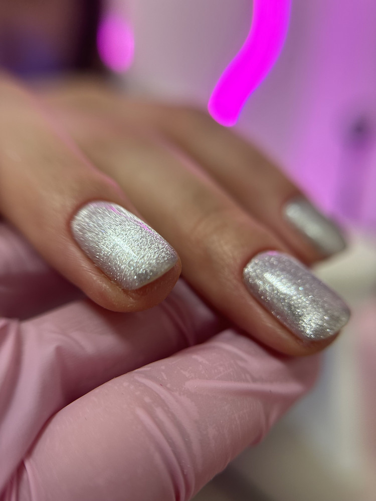 Цвет: Магнитный гель-лак с ярким серебристо-белым бликом