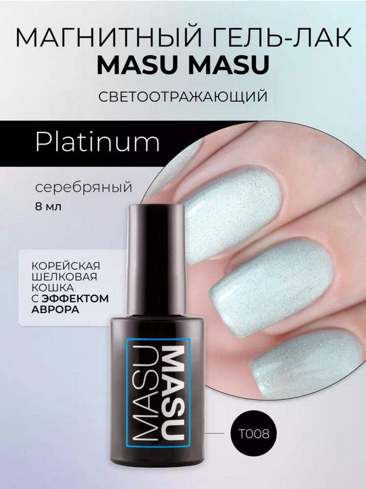 Гель-лак MASU MASU магнитный Platinum – серо-серебряный с ярким серебристо-белым магнитным бликом – гель-лак с модным завораживающим эффектом для потрясающего маникюра или педикюра.
