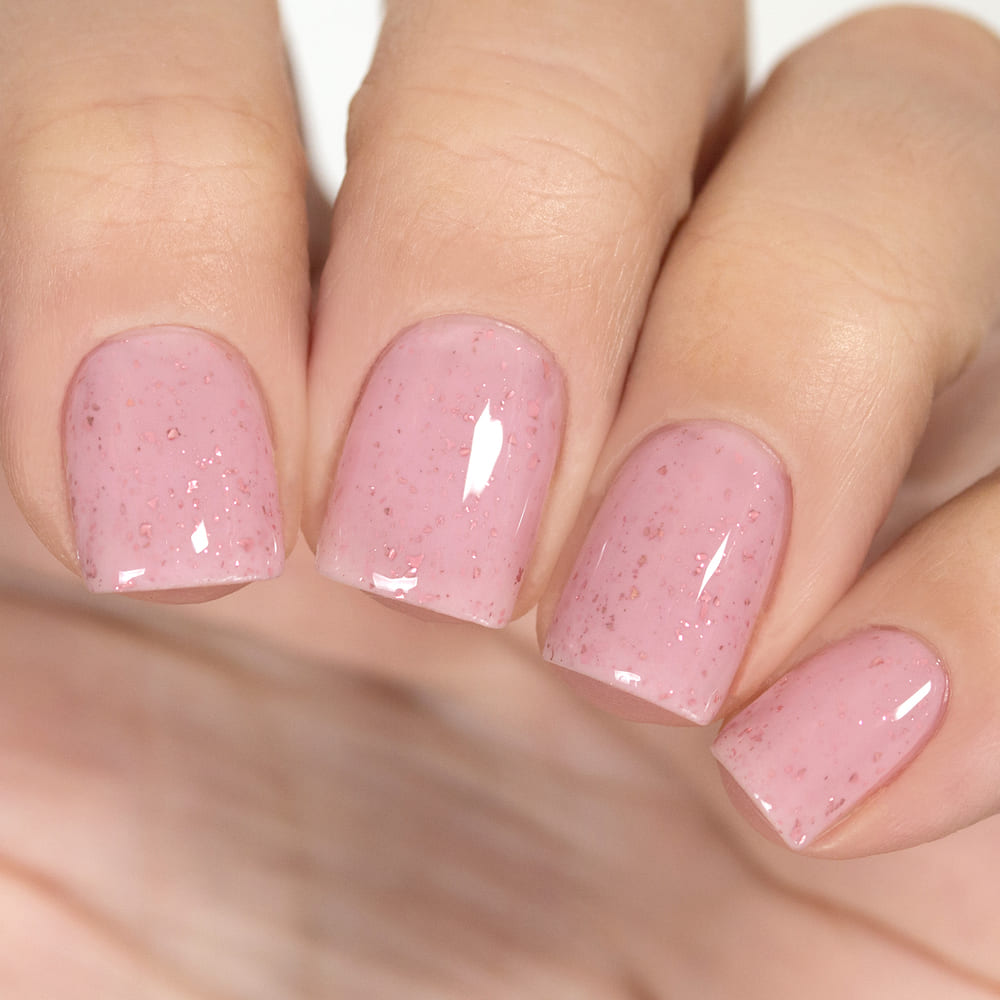 - 1646 Лак для ногтей Клубничный Фраппе - Очаровательный и нежный, наш лак для ногтей представляет собой мягкий розово-молочный оттенок с невесомой розовой поталью. Этот нежный цвет придаст вашему маникюру летнее настроение.