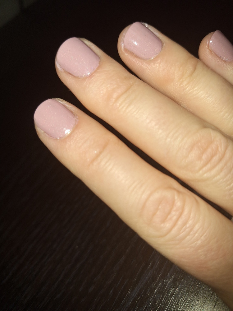 Снимается жидкостью для снятия лака. На фото лак нанесен в два слоя и покрыт топом.