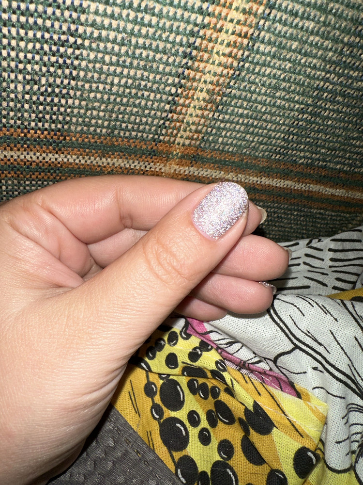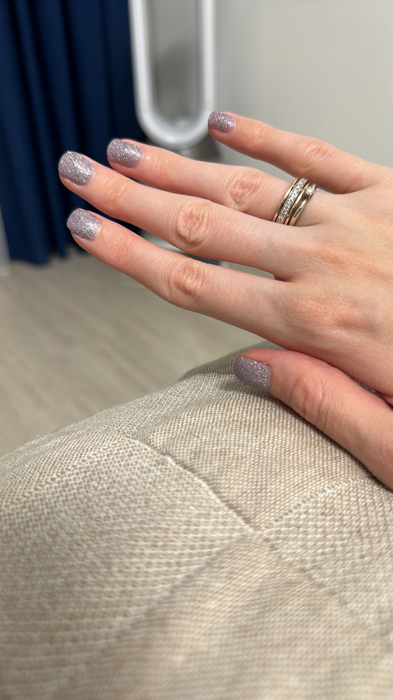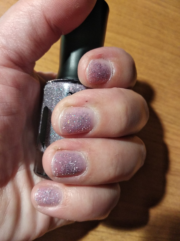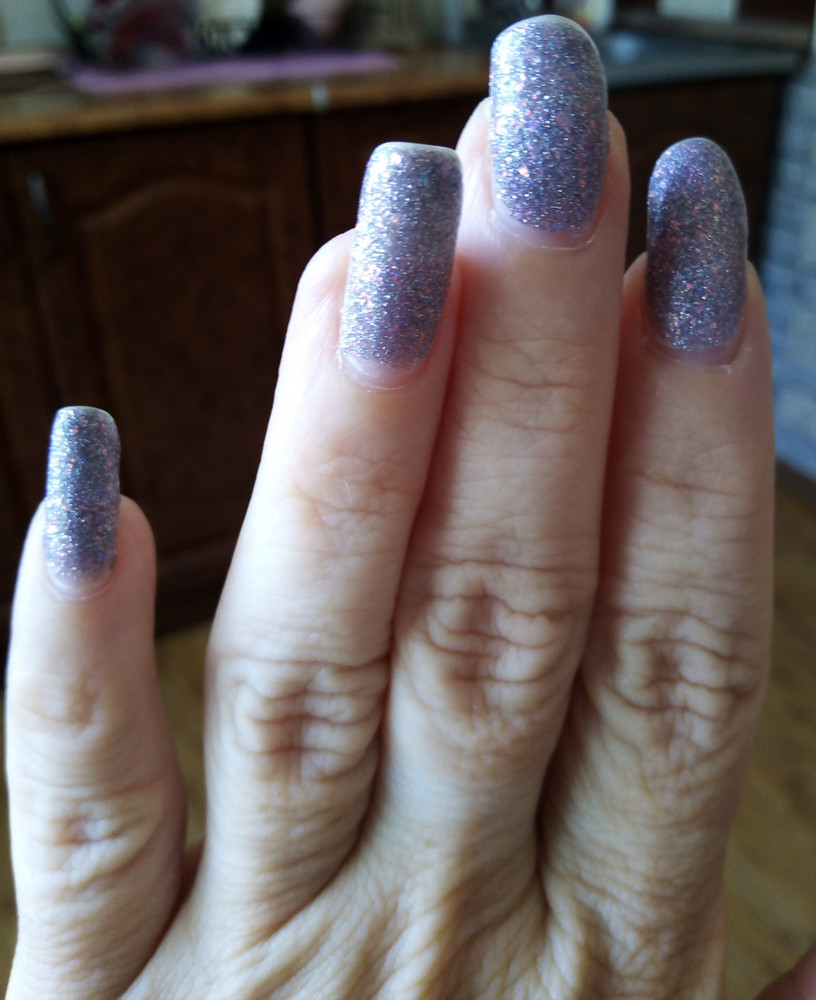 Цвет: сиреневый с бежевым подтоном с мультихромной слюдой и голографическим светоотражающим глиттером
