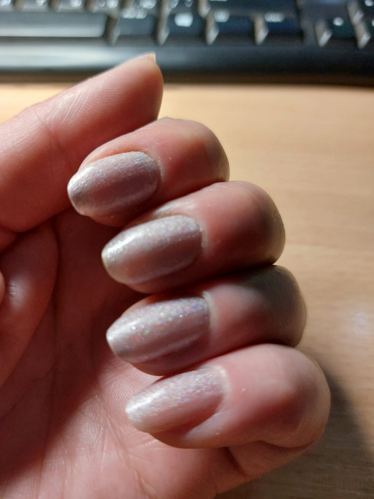 Цвет: холодный розовый с каплей бежевого с мельчайшим голографичесским глиттером