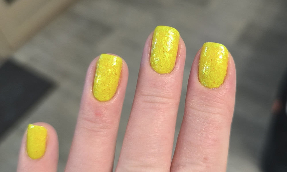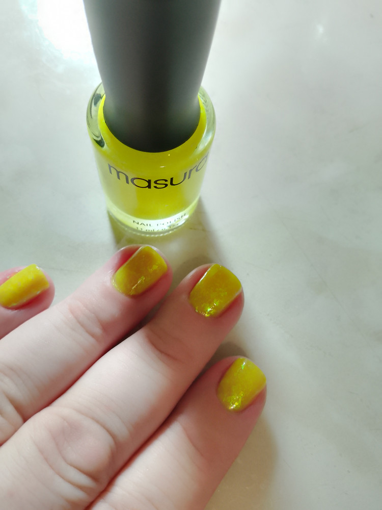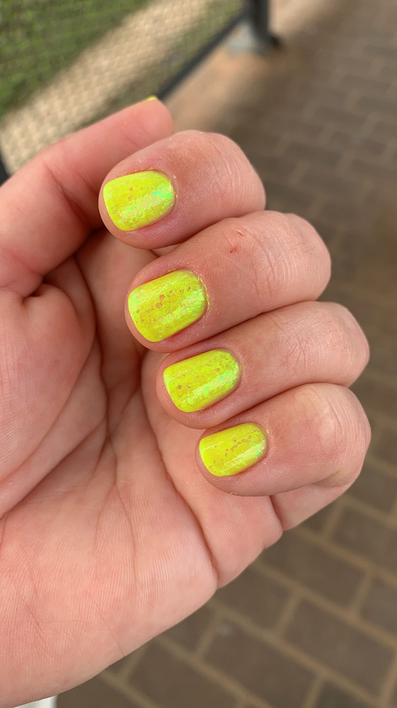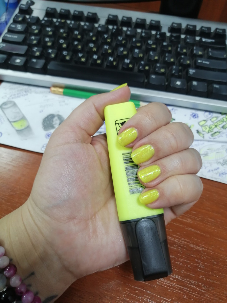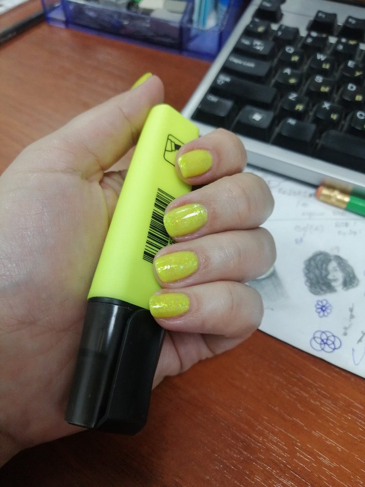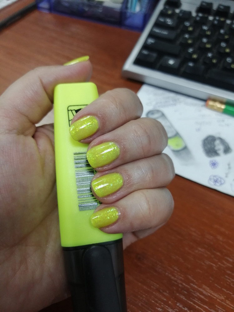 Цвет: Желтое неоновое желе с мультихромной зелено-розово-золотой слюдой