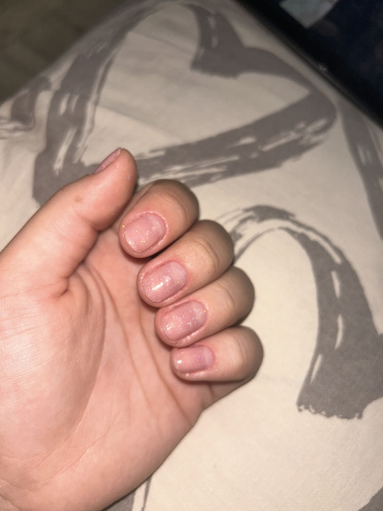 Цвет: Бежево-розовый с мелким голографическим глиттером