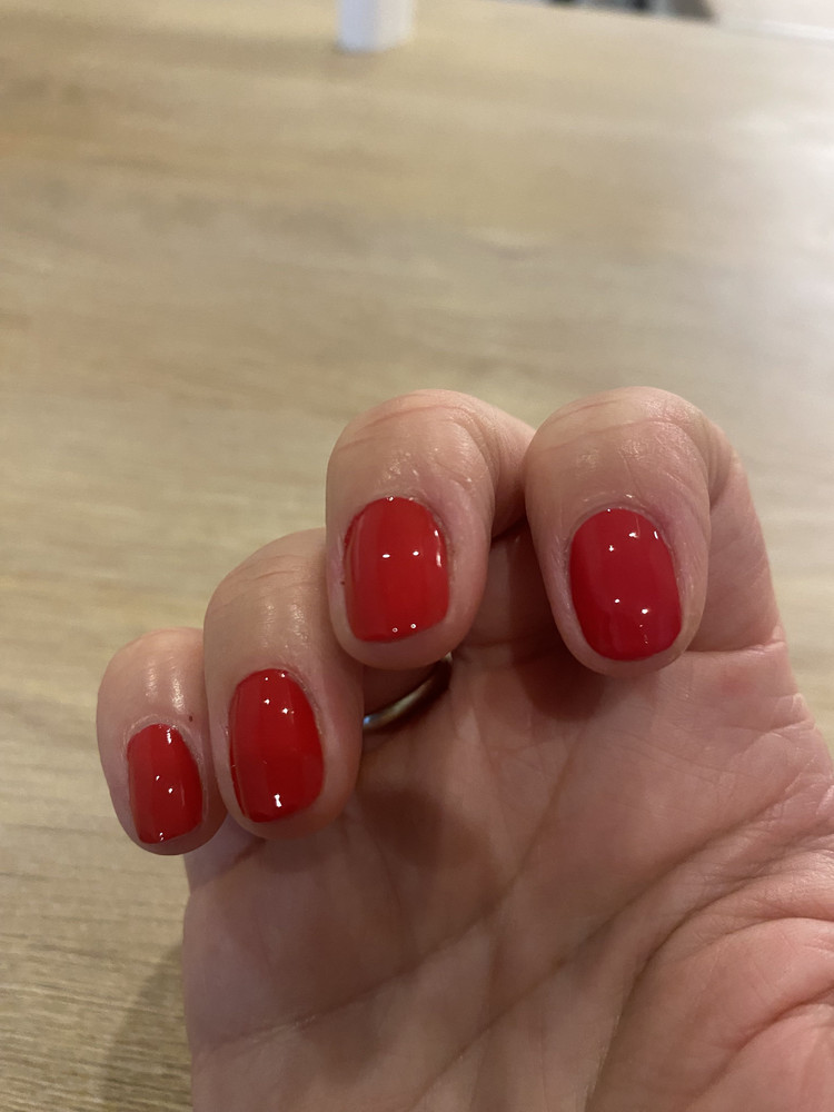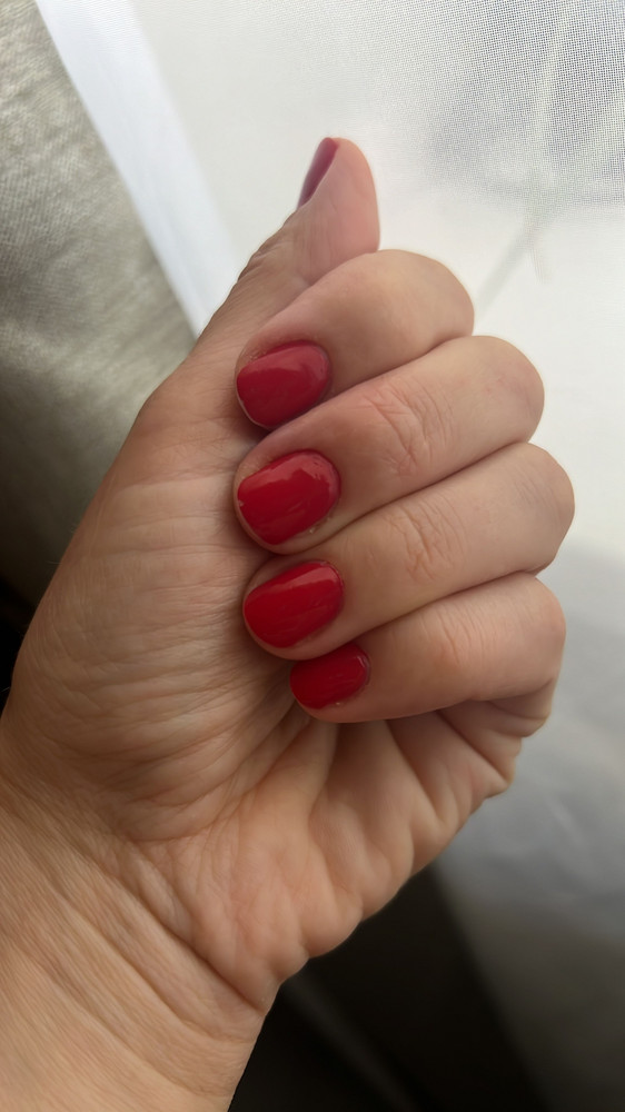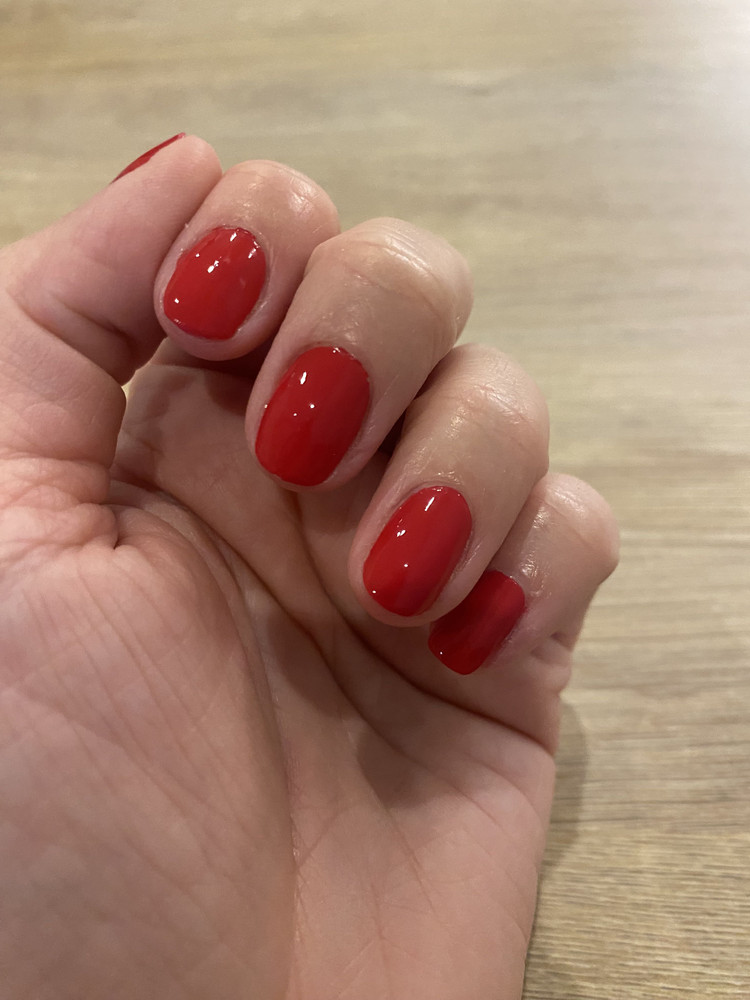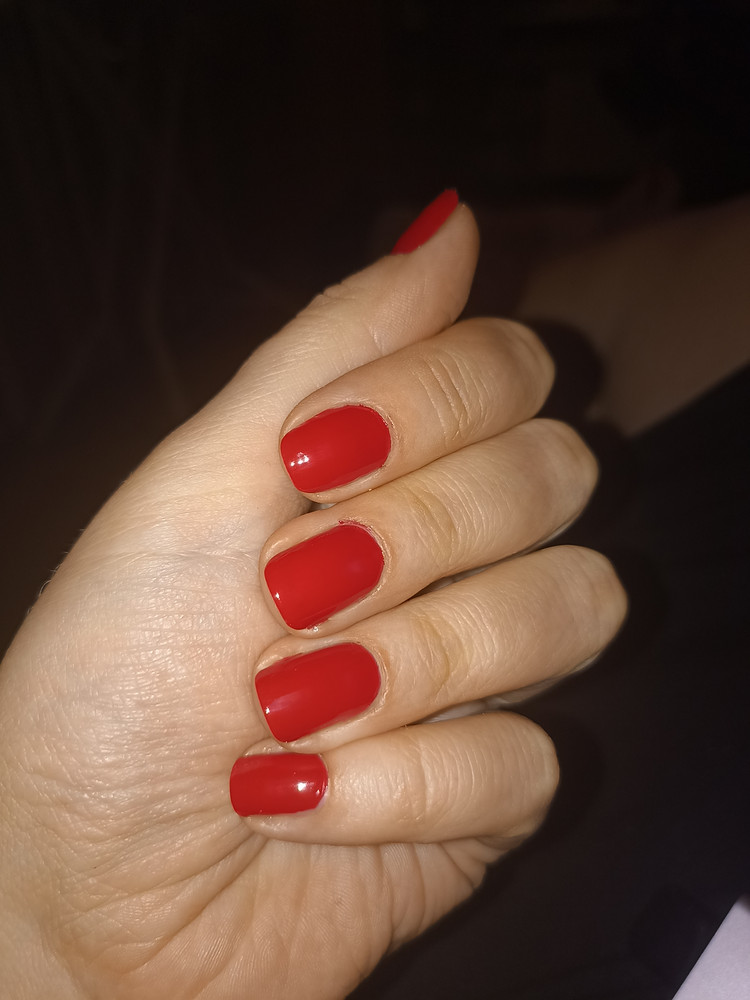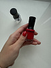 Пришел в картонной коробочке, в запаянном пакете и в пупырке. Цвет красный с розовинкой. Такой цвет очень трудно найти среди обычных лаков. Это второй лак этой фирмы. Нравится, что лаки жидкие, самовыравнивающиеся, но при этом не текут в кутикулу. На отлип сохнут достаточно быстро. При этом в бутыльке не густеют со временем. По стойкости в 2 слоя без базы и топа у меня дня 4-5 без домашних дел, если весь день контактирую с водой (уборка, стирка) может и за 1 день слезть.