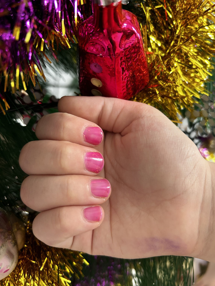 Меня покорило название) цвет насыщенный, в реальности более розовый, чем вышел на фото, точно как кисель. Мне нравится, хотя обычно розовый не моя тема. Покрасила в 3 слоя. Спасибо!