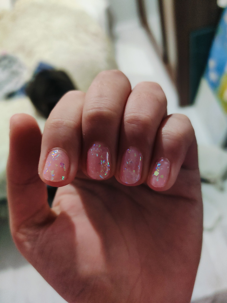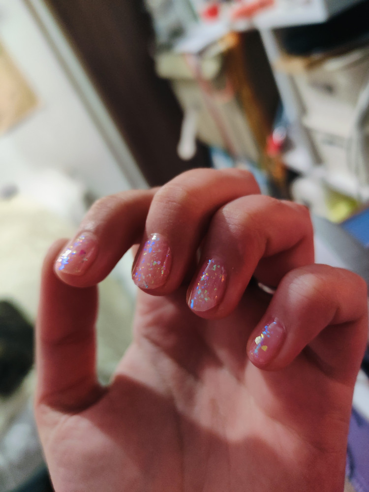 На фото маникюр после честной недели носки. Есть небольшие сколы, но там мытье посуды, полов и вообще, я люблю что-то ногтями поковырять.
