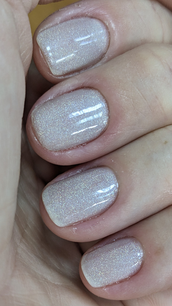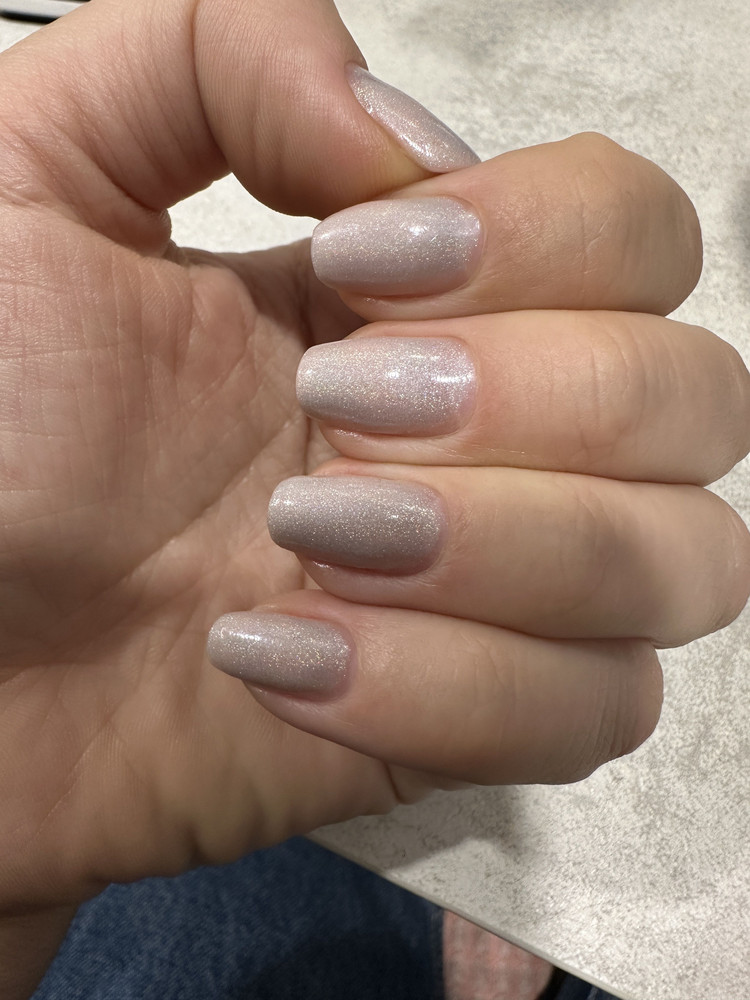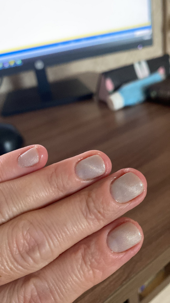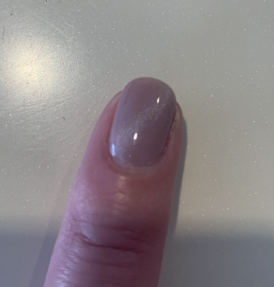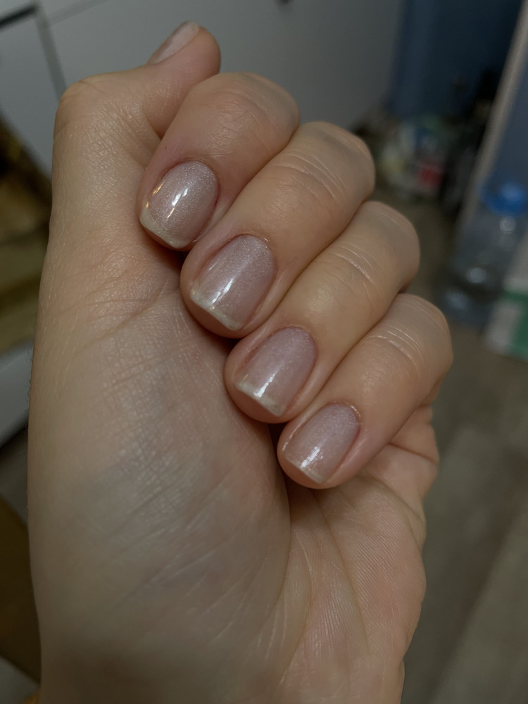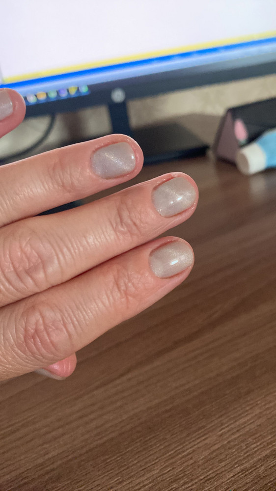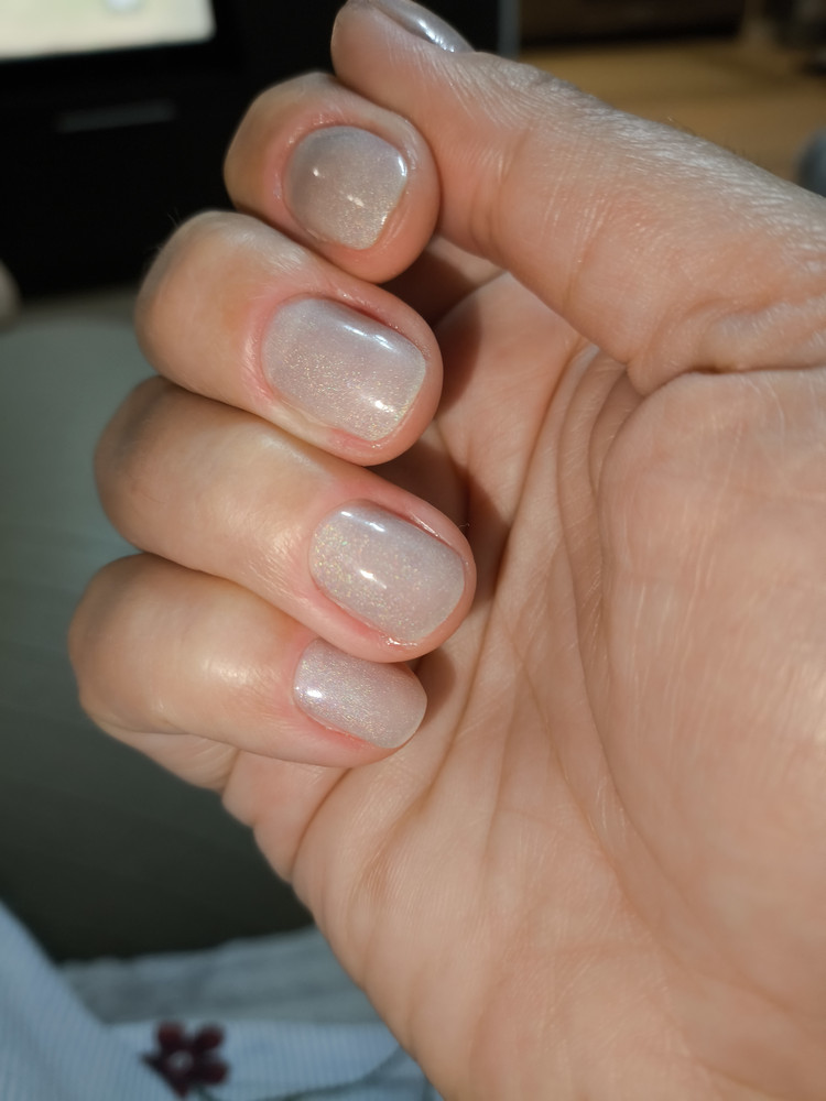 Очень нежный магнитный блик, который на солнышке как голографик. Кто ждёт от этого лака яркого блика как в кошке, тогда этот лак не для вас. Серовато молочная основа очень красивая, красила в три слоя без подложки. Можно и в один но на молочную подложку. Я именно такой и хотела