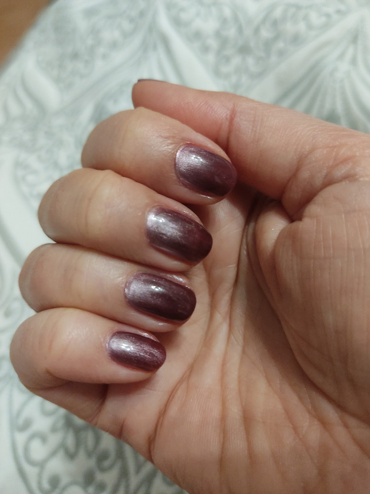 Я нанесла два тонких слоя, магнитила хорошо прям не меньше минуты держала магнит. Блик долго подвижен, потому сноровка нужна чтоб не убежал нужный эффект. Цвет красивый на осень хорошо. На видео без базы, два тонких слоя плюс топ.