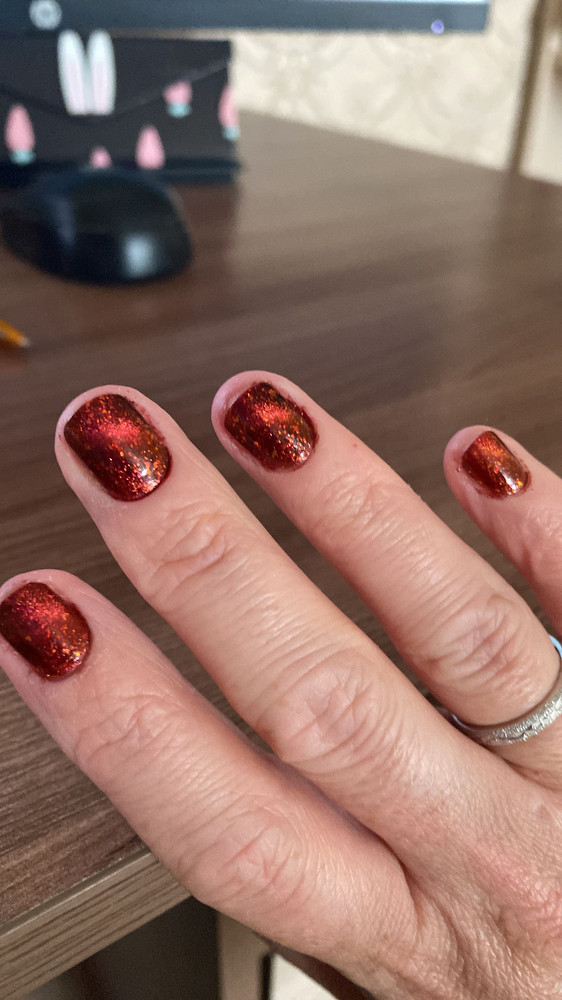 Лак очень красивый!Просто огонь!Магнитный блик не очень выражен,но использование магнита придает лаку аквариумный эффект.Слюда хорошо видна.