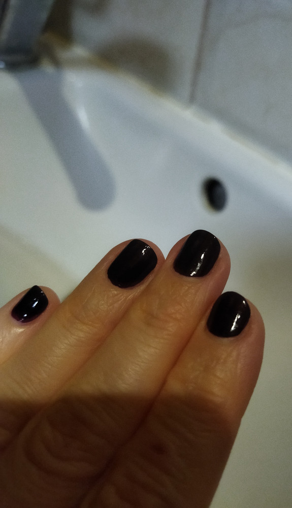 Ложится хорошо, цвет почти как на картинке, слегка больше фиолетового оттенка, название тона соответствует. Не слишком жидкий и не густой. Единственное мне не понравилась кисть, очень широкая к концу, попадала на кожу, когда красила. Надо будет приноровиться.