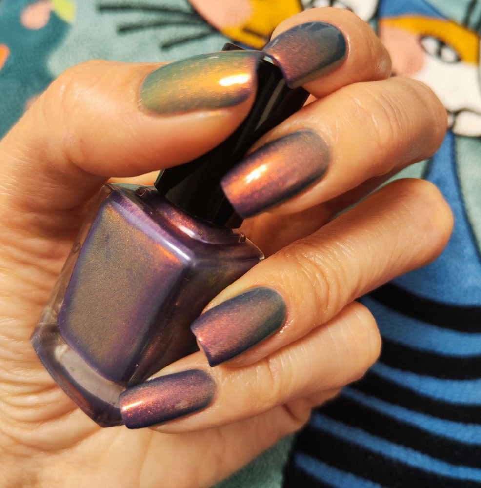 Ну во-первых, ожидание и реальность разошлись) лак полуматовый, термо-эффект не плавный, а очень резкий, я бы в описание добавила еще слово "хамелеон". На второй день появились сколы , хотя ничем себя не утруждала. Но. Цветопереливы безумно красивые, и за это прощаю этому лаку все минусы (кроме цены, она реально завышена